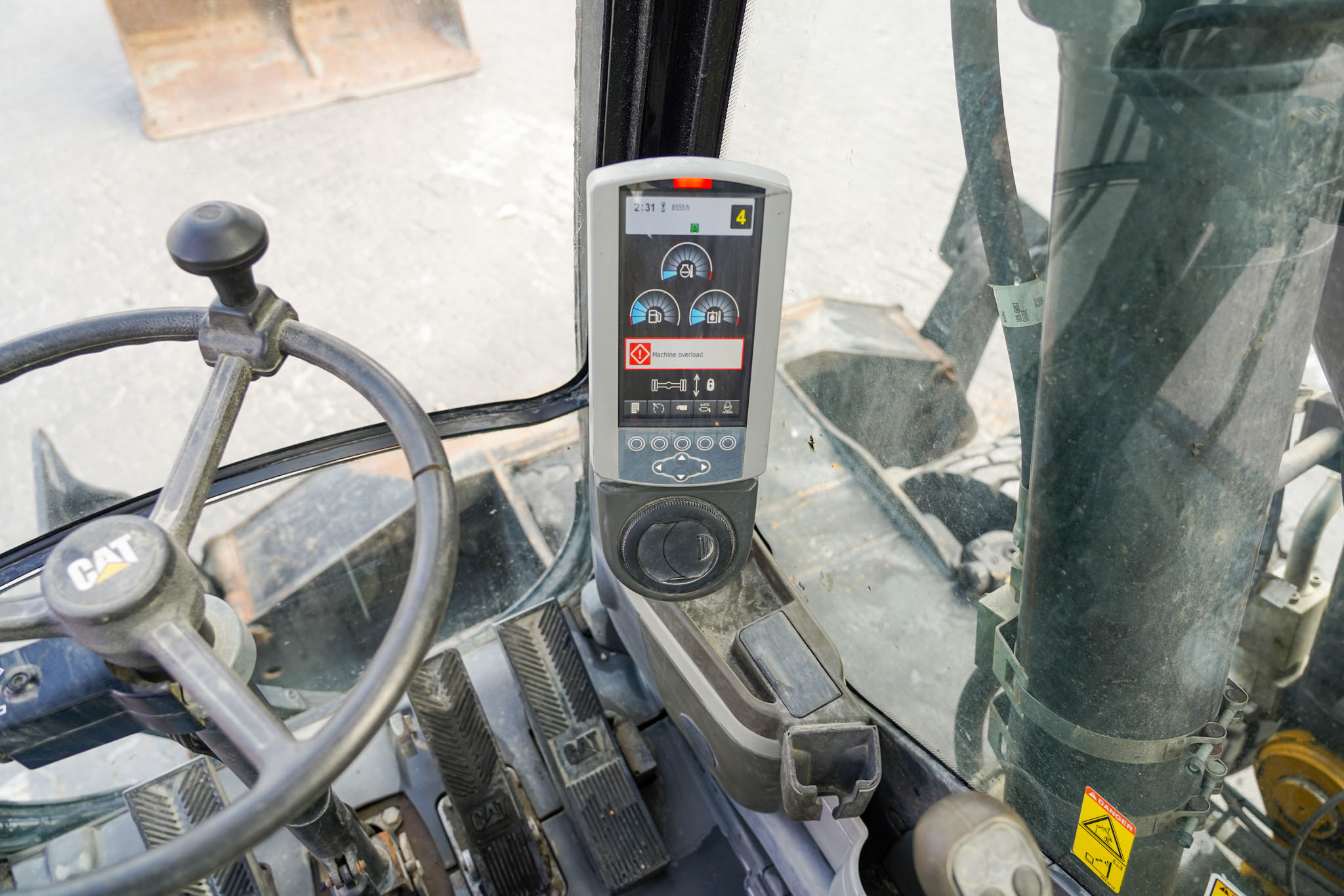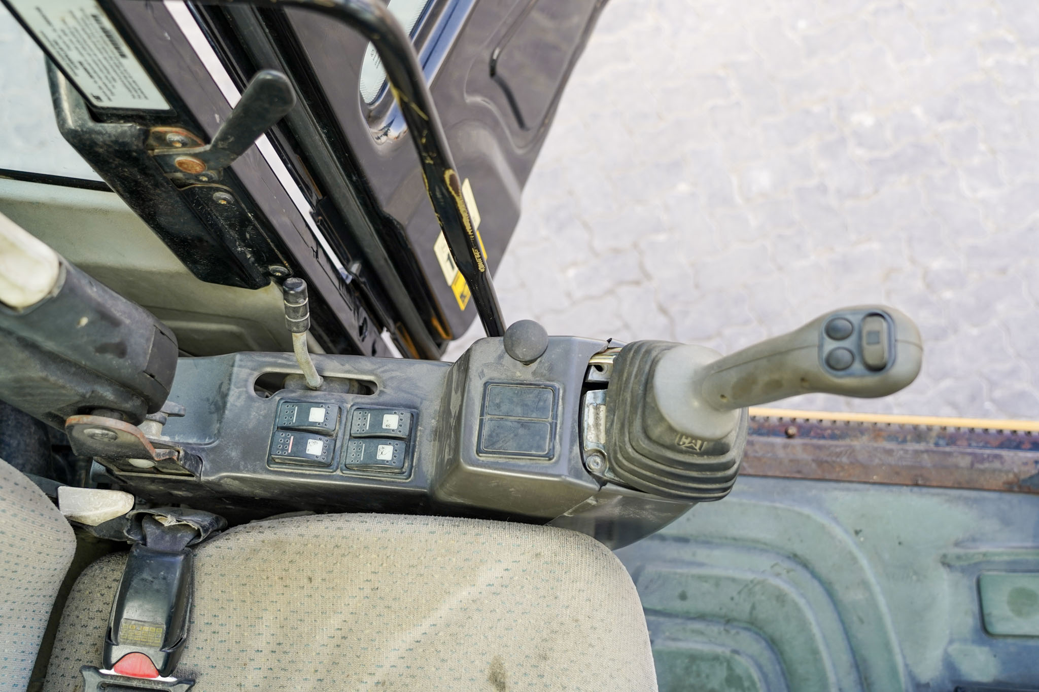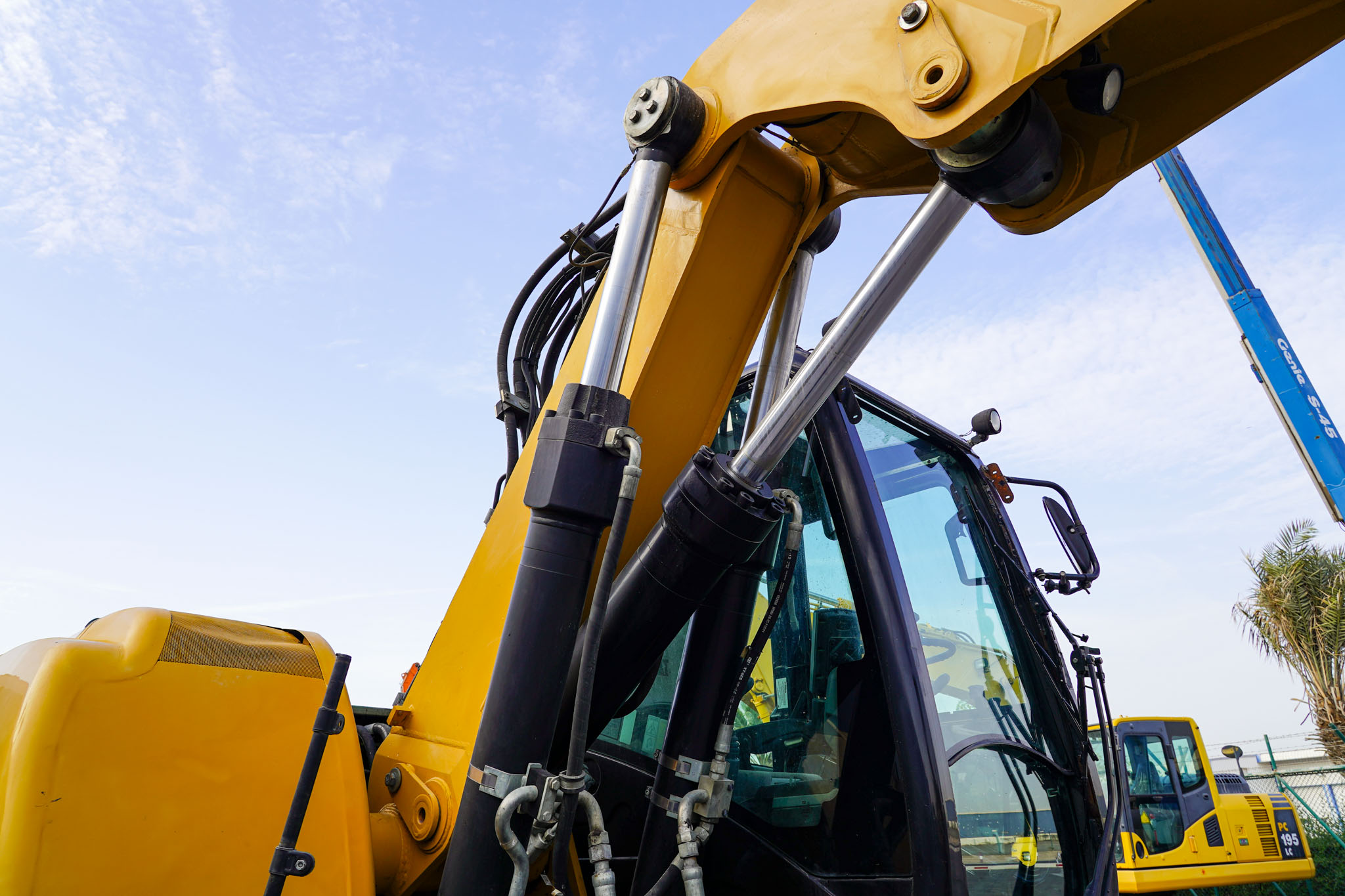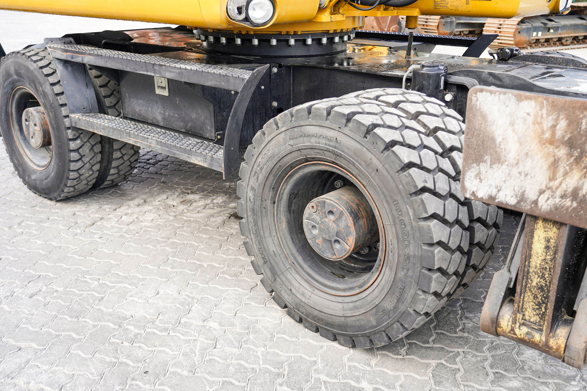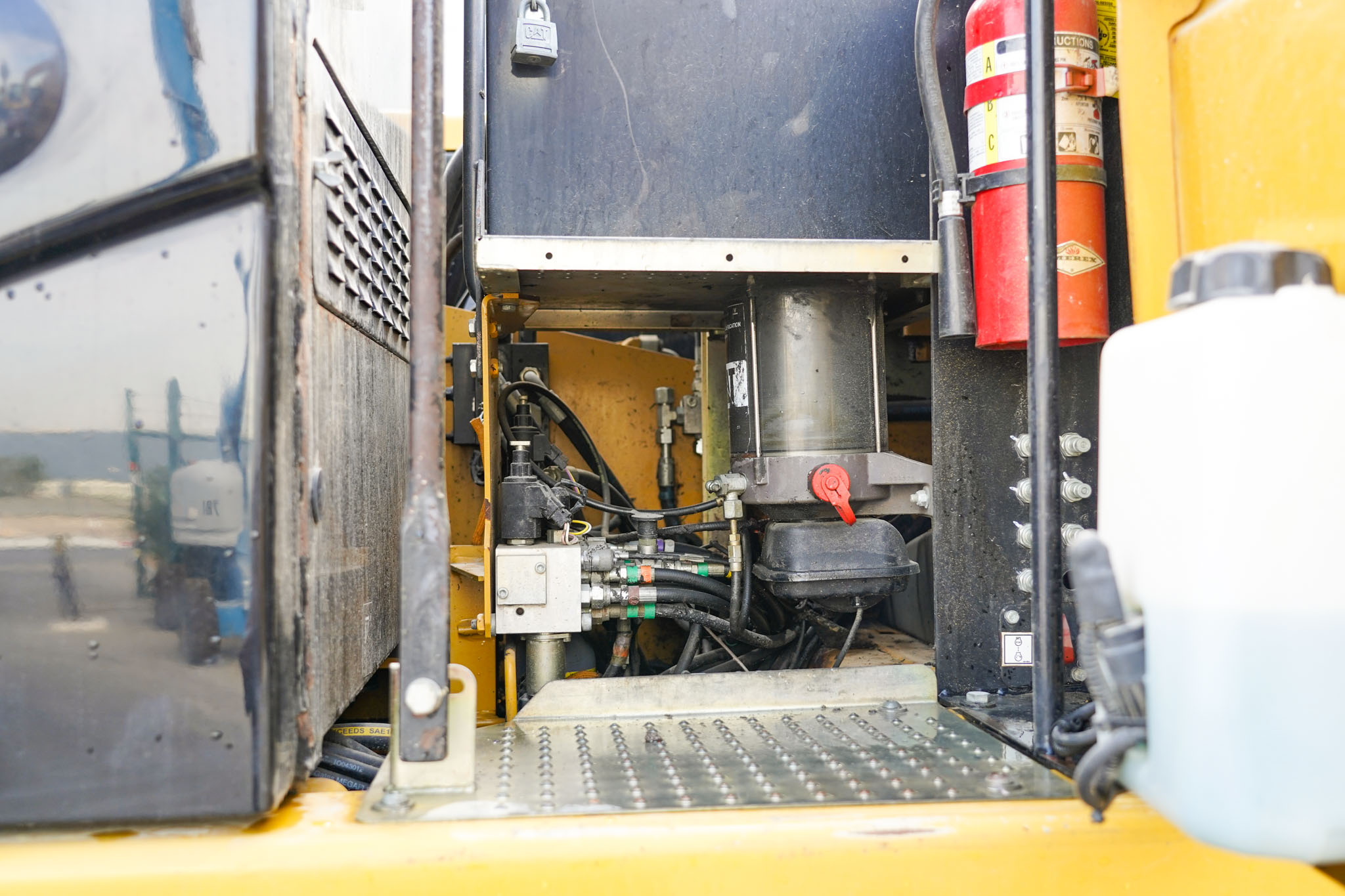 Air Conditioner, CAT 6 cylinder Diesel engine with 166-170 HP, 9 ft 2 in Stick, Auxiliary Hydraulic Plumbing, Front and Rear Stabilizers, 10.00×20 Tires, 70 in Hydraulic Tilting Bucket. EX#1457