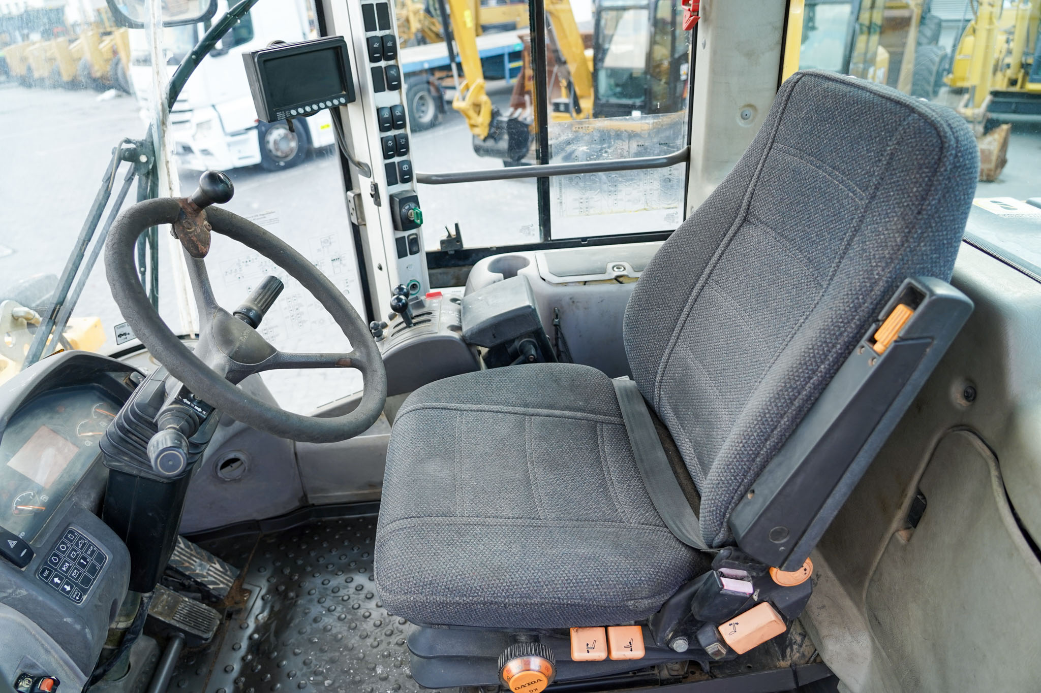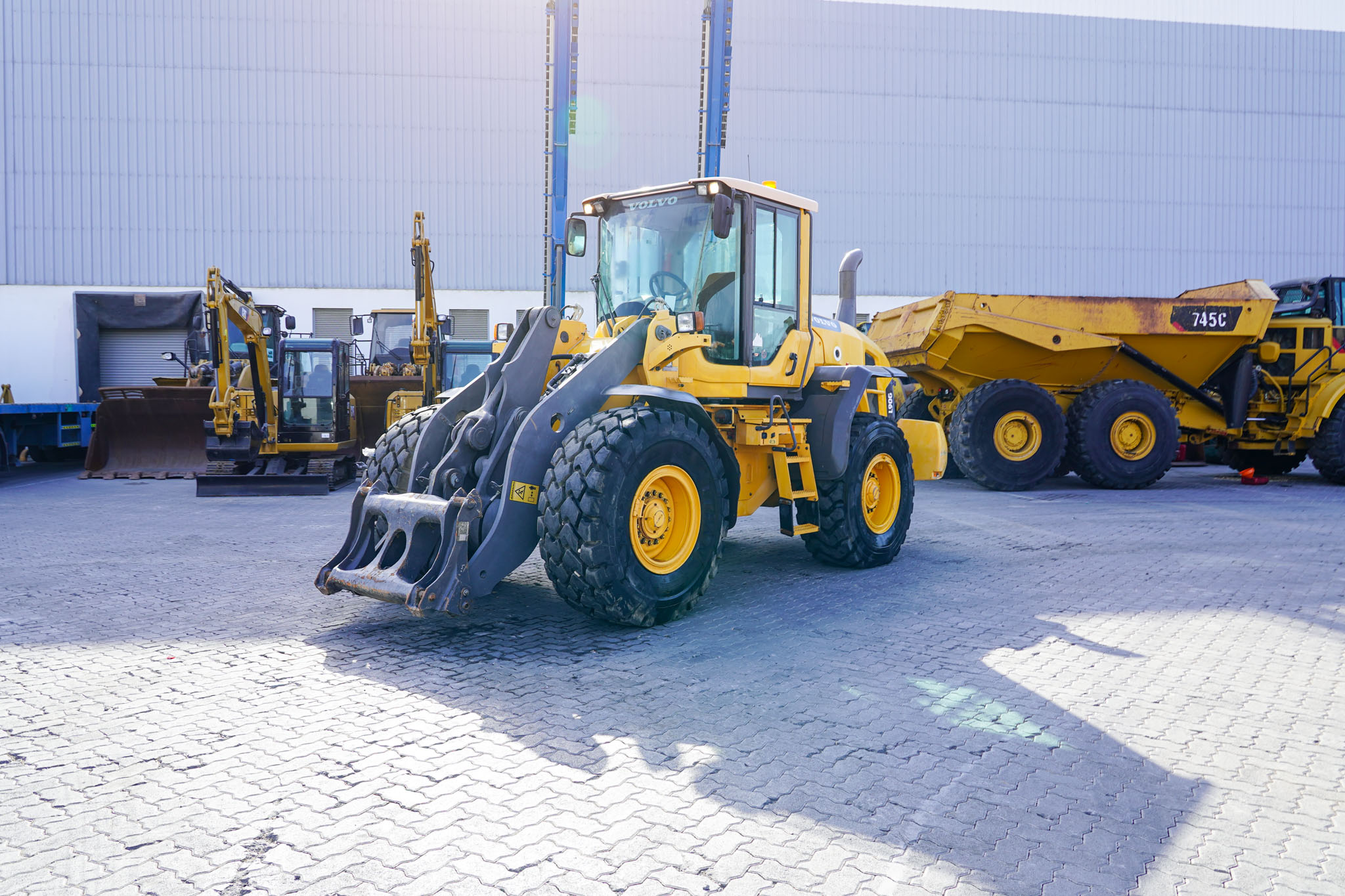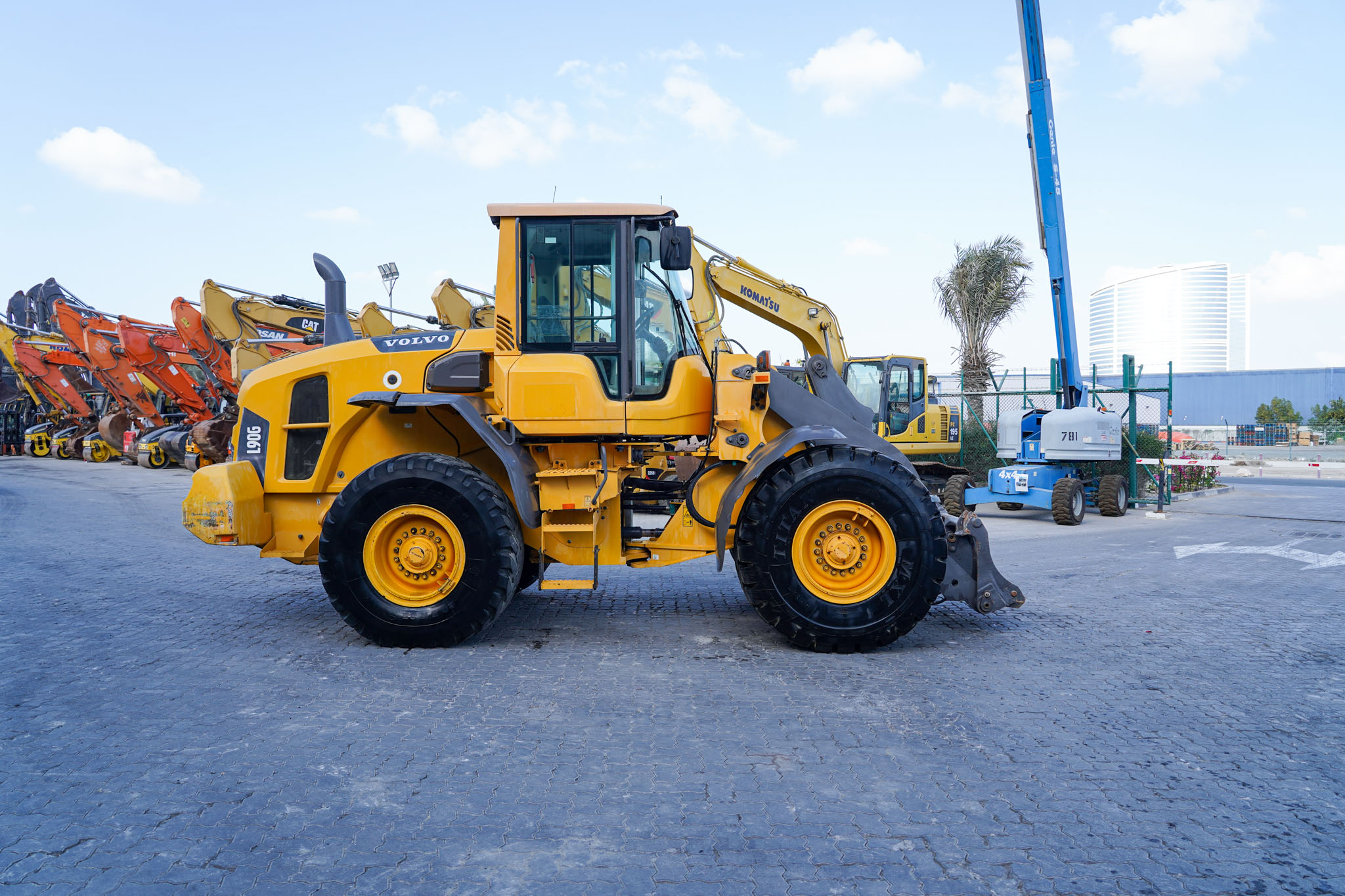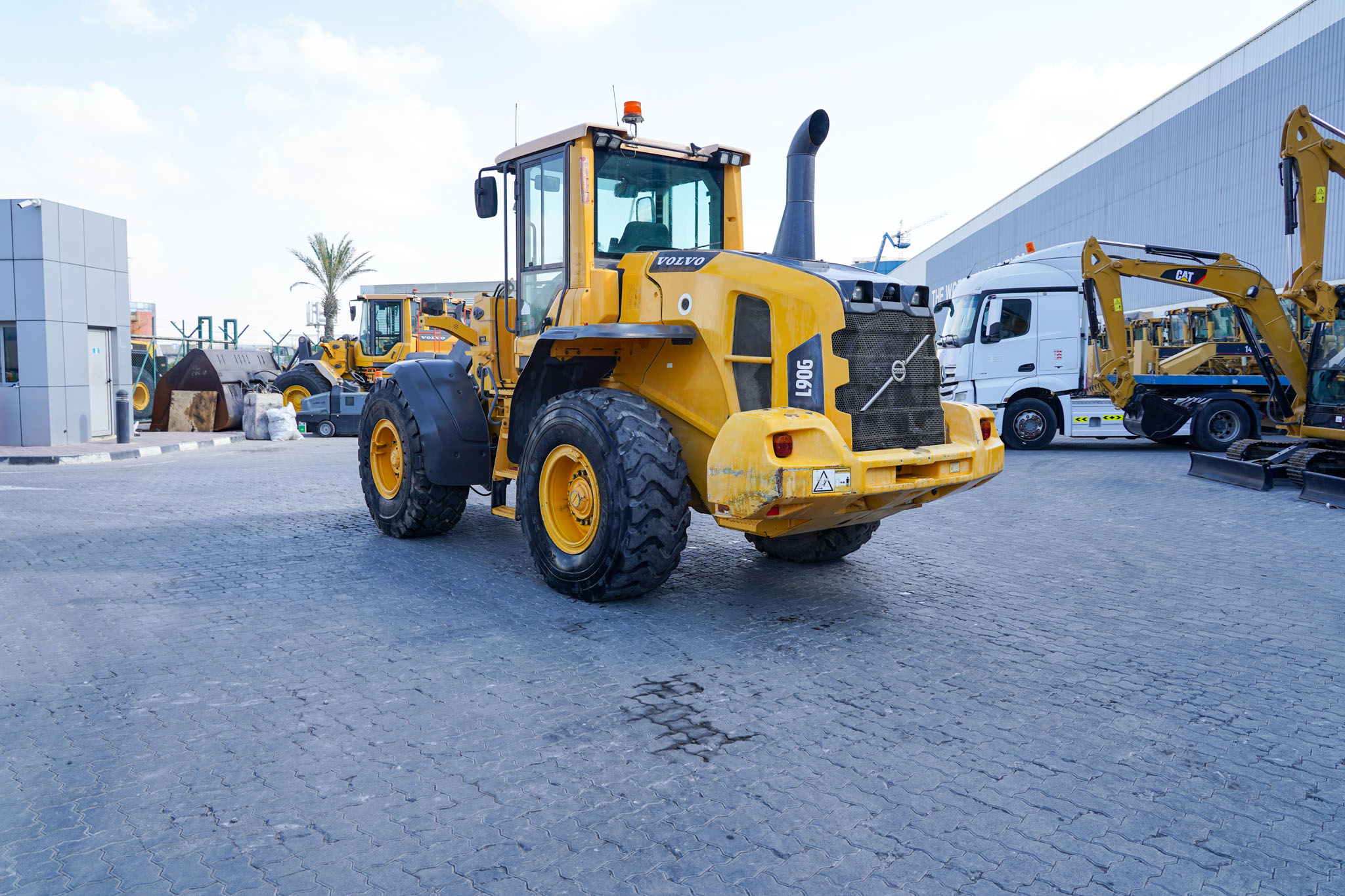 The 2012 Volvo L90G is a versatile, mid-size wheel loader featuring a 173 hp Tier 4i engine, 2.3–2.8 (m^{3}) bucket capacity, and a ~15-ton operating weight. It offers high breakout force, load-sensing hydraulics for fuel efficiency, and a TP linkage system, making it suitable for various construction and agricultural tasks.