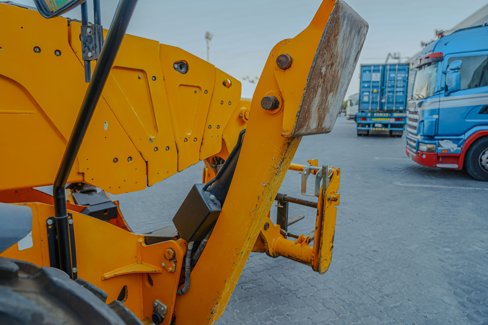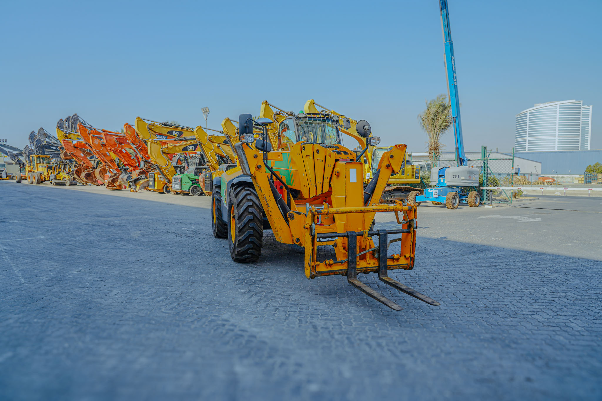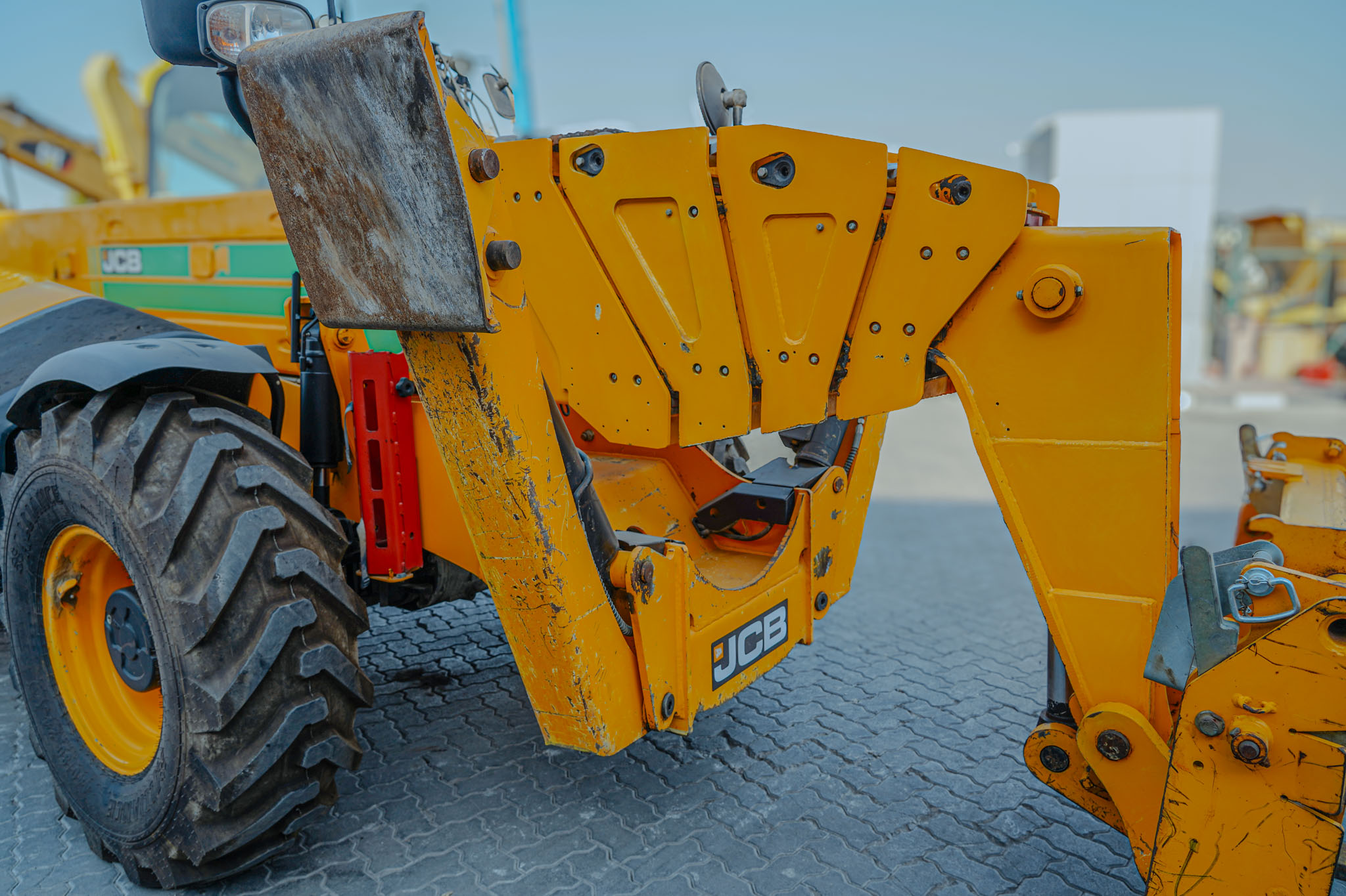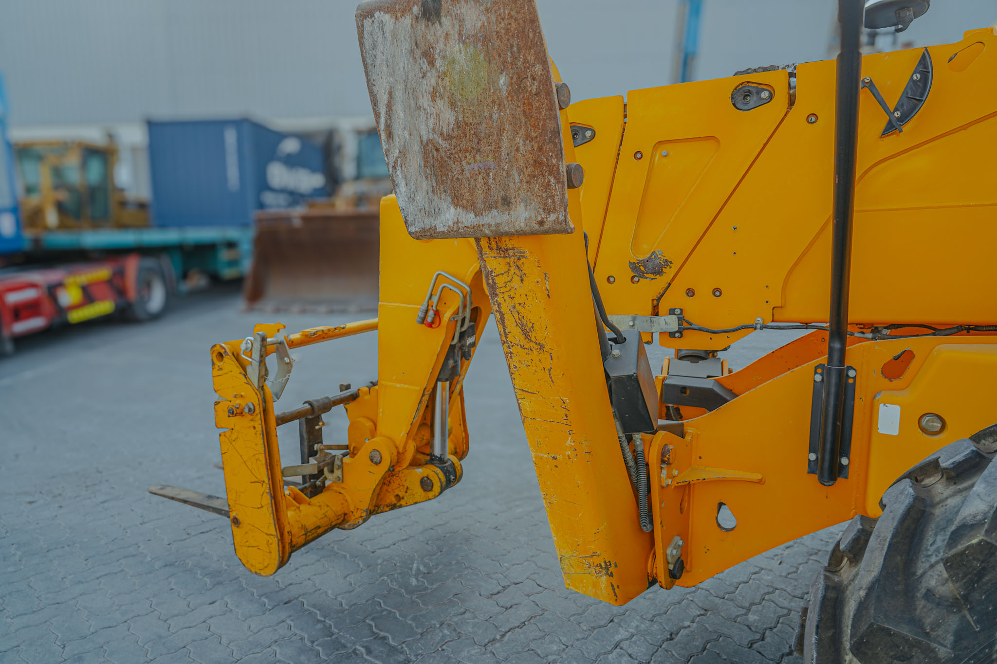 Enclosed Cab, Load Moment Indicator, 20 m Max Lift Height, 4000 kg Max Lift Capacity, 2017 US EPA Label, 1070 mm Forks, Manual Coupler, Outriggers, Frame Leveling, Auxiliary Hydraulic Plumbing, 440/80-24 Tires, EX#1507