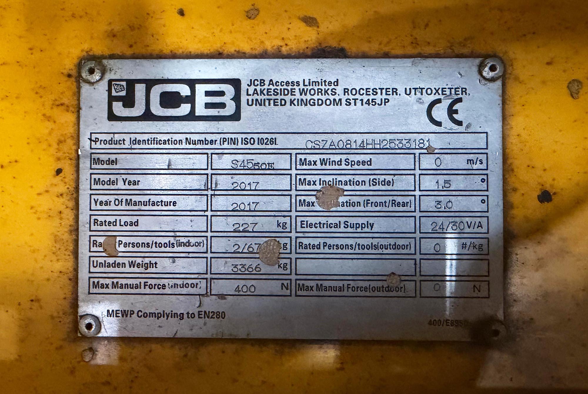 2017 JCB S4550E Electric Scissor lift