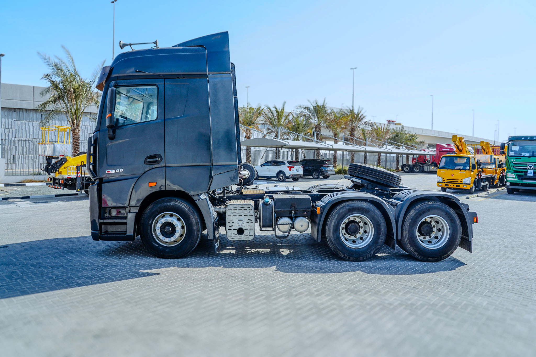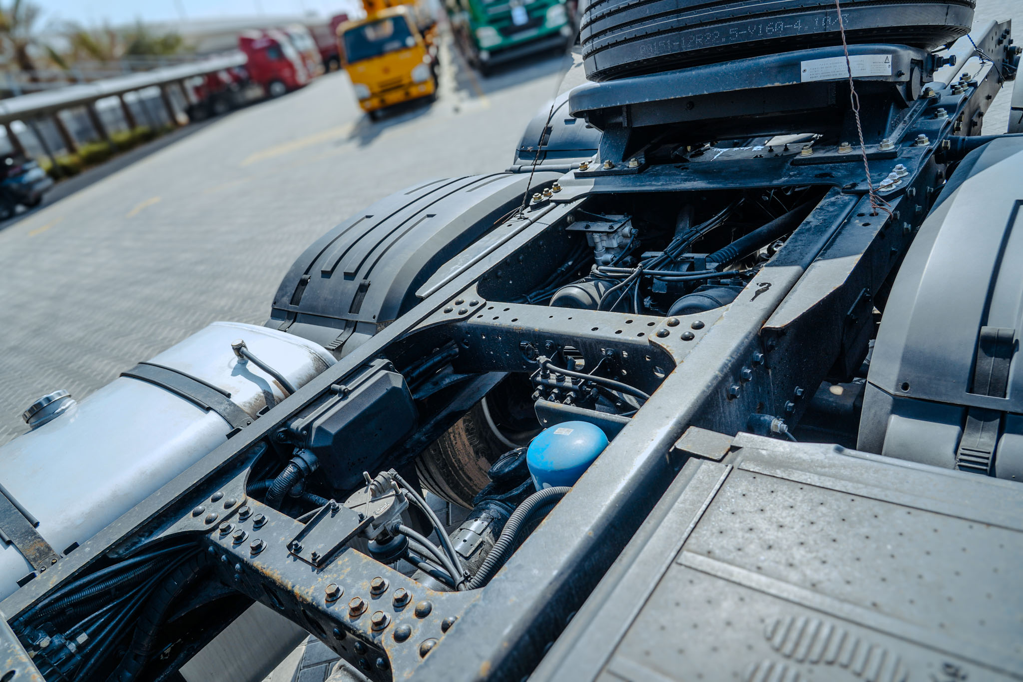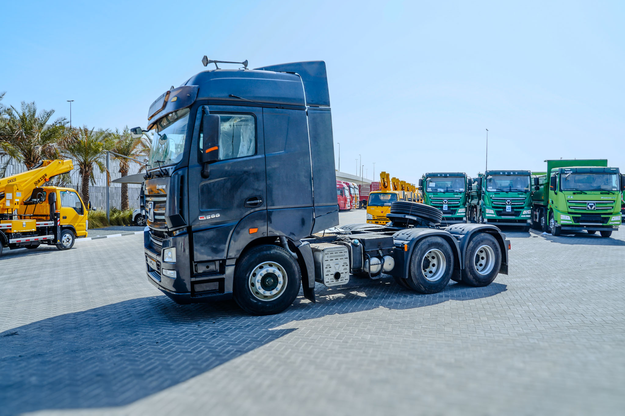 Weichai 500 HP Engine, Chinese Tier 5, 12-Speed Manual Transmission, Exhaust Brake, Differential Locks, Power windows, Air ride seat, Bunk Beds, Air Conditioner, Spring Suspension, 12R22.5 Front Tires, 12R22.5 Rear Tires, EX#1677