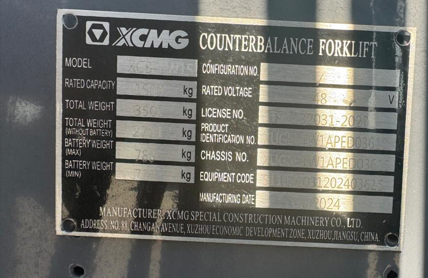 The 2024 XCMG XCB-TW15 1500 kg Electric Forklift (Unused) is a reliable, zero-emission material handling machine optimized for warehouse, logistics, and industrial operations. Featuring smooth electric drive performance, low noise levels, and precise control, it handles loads up to 1500 kg with efficiency and stability. Key features include an ergonomic operator cabin, advanced safety systems, robust mast construction, and easy maintenance access — delivering productive, efficient, and environmentally friendly forklift performance.