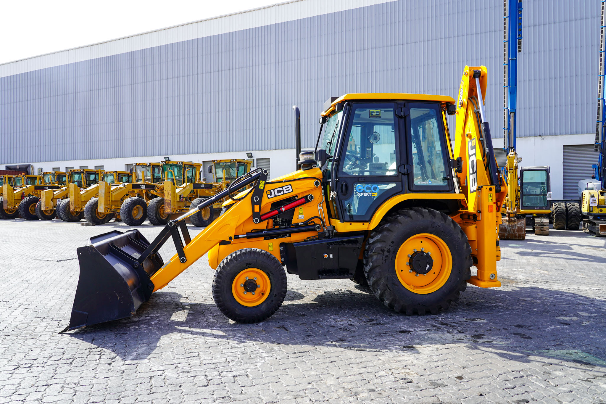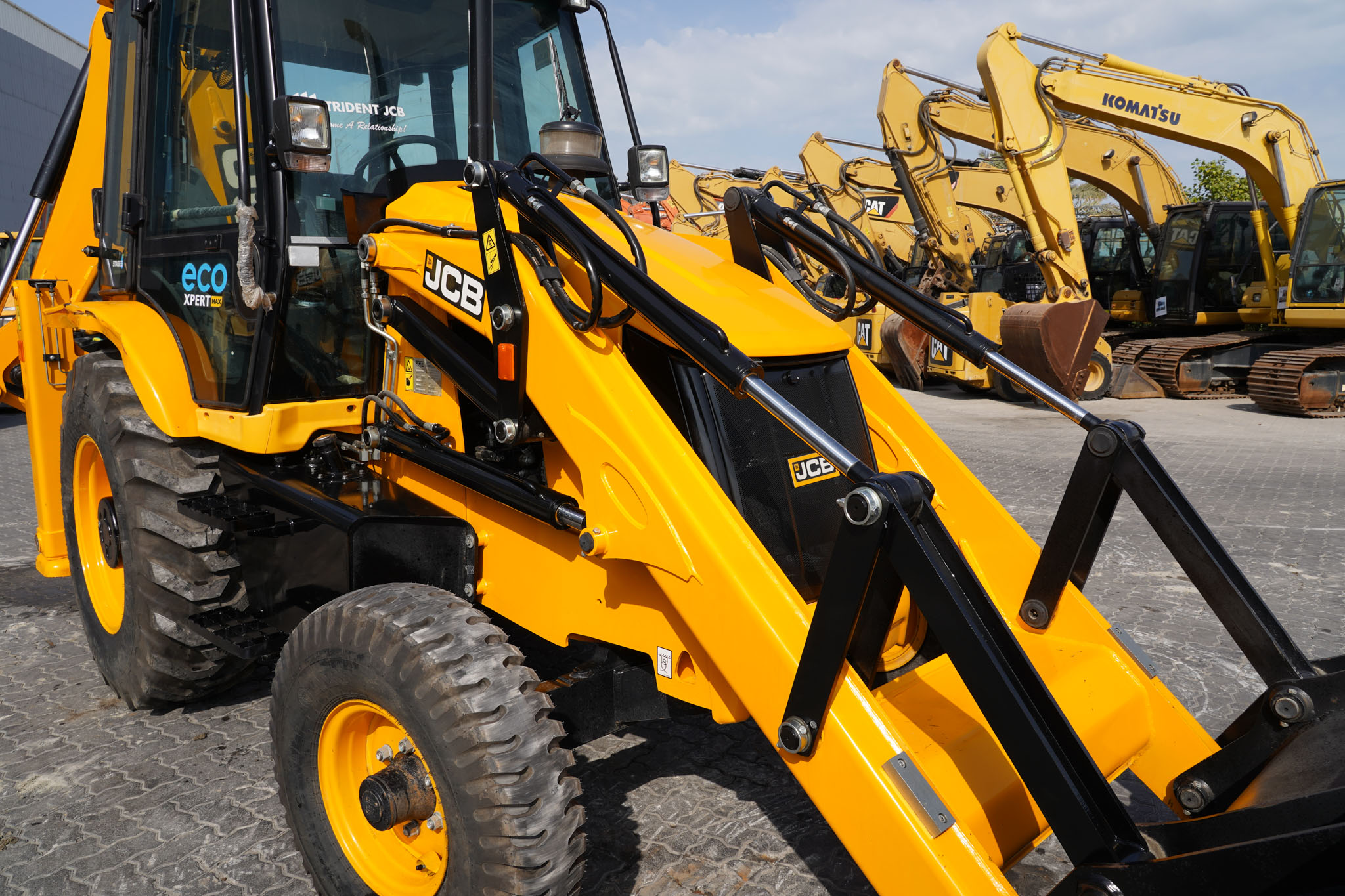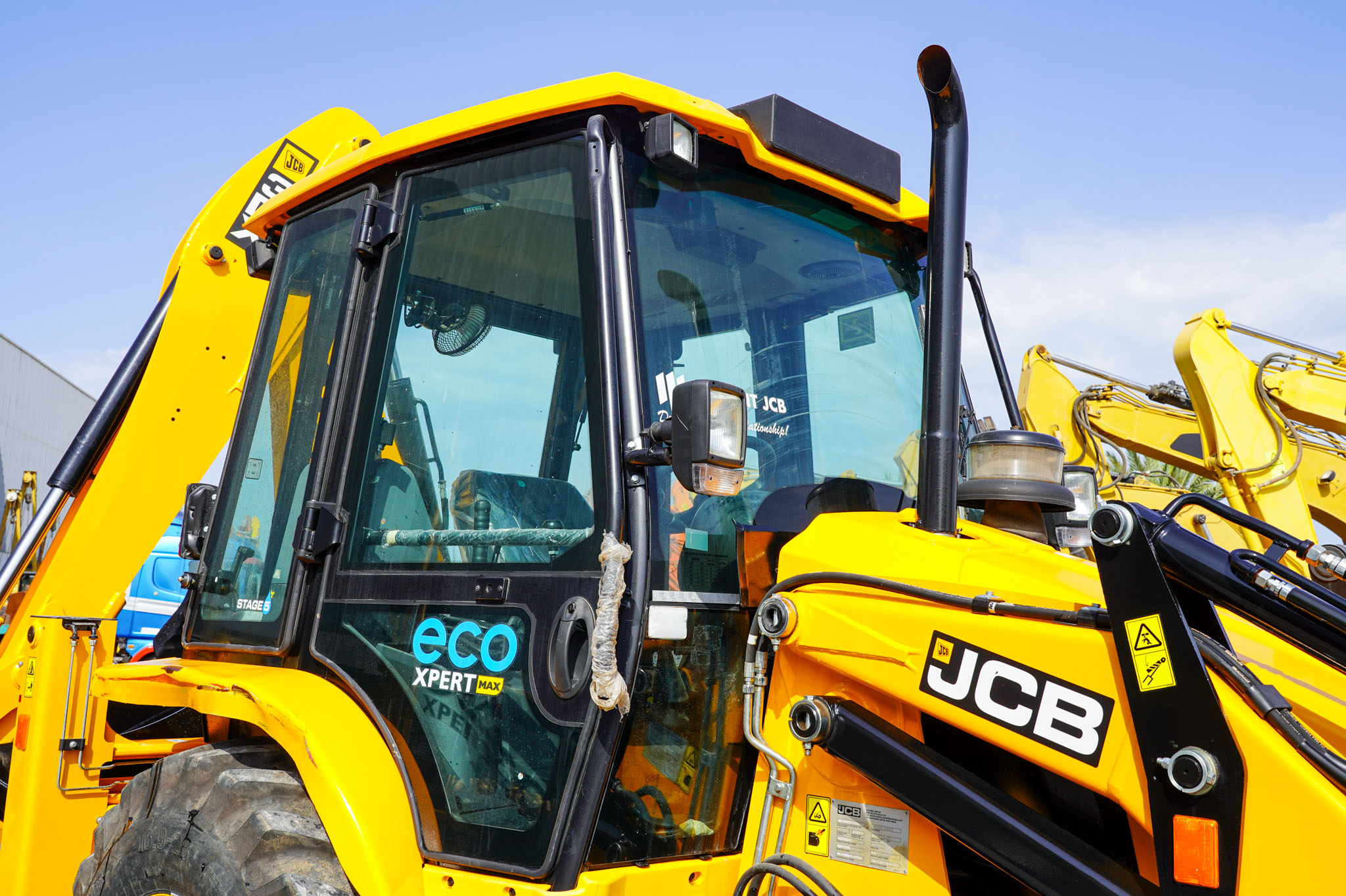 JCB Eco Xpert max, Stage 5, Turbo Charged Engine, 37 kW / 50 HP Engine Power, 4 Speed Manual Transmission, Enclosed Cab, 2WD, 1.1 Cu m GP Loader, 2.74 m Dump Height, 850 mm Backhoe Digging Bucket, 4.77 m Digging Depth, Side Shift, Air ride operator seat, and 10% Lower Fuel Consumption, EX#1649