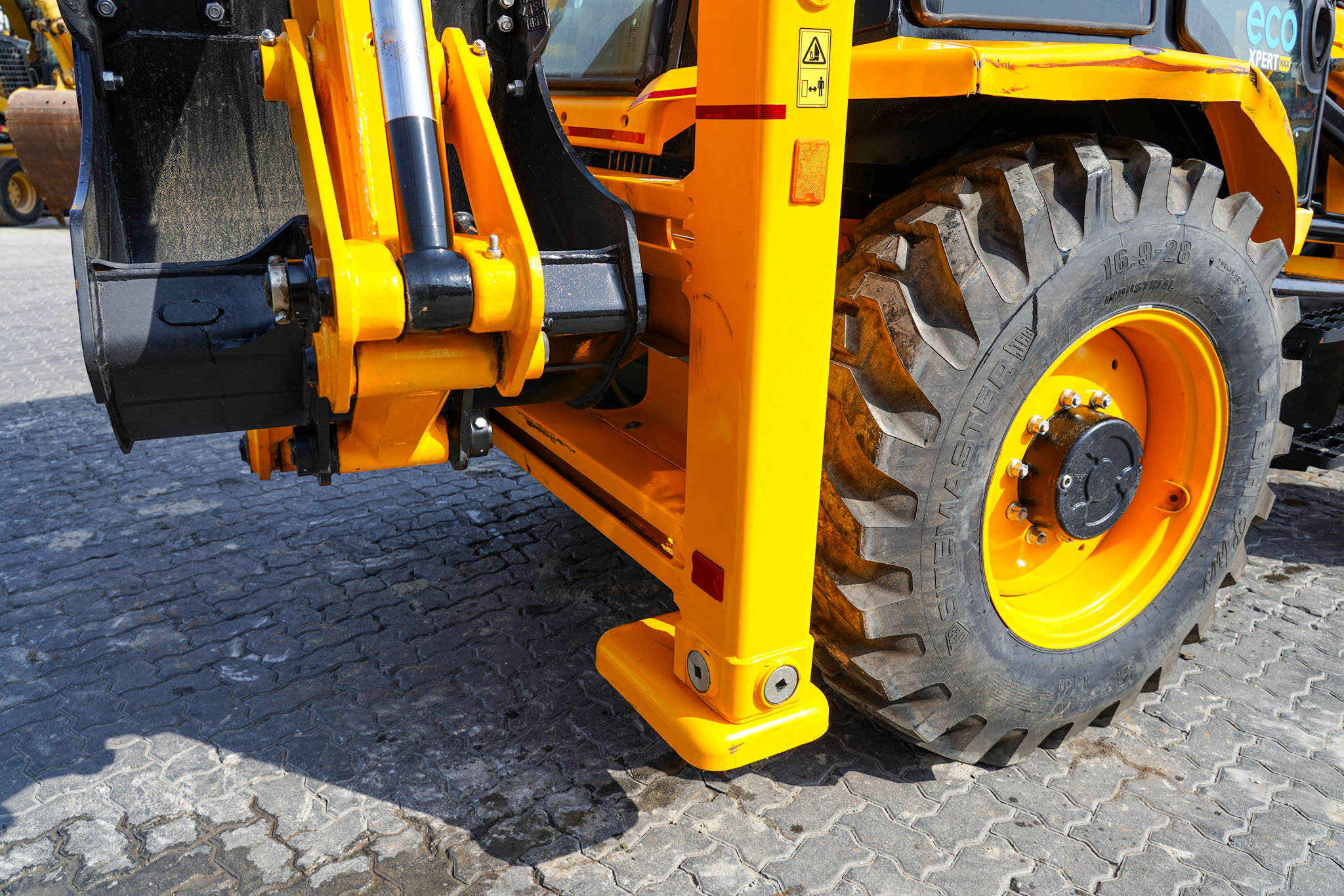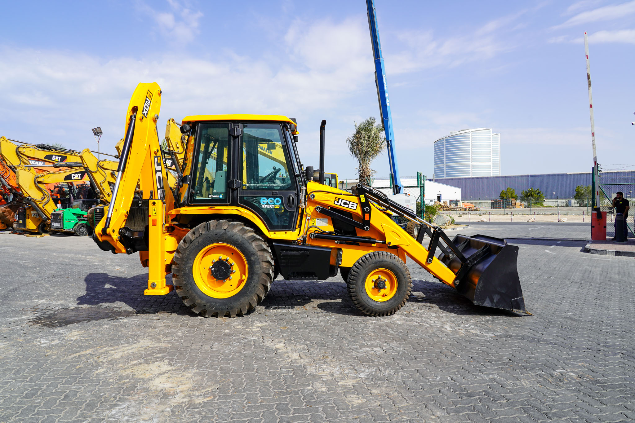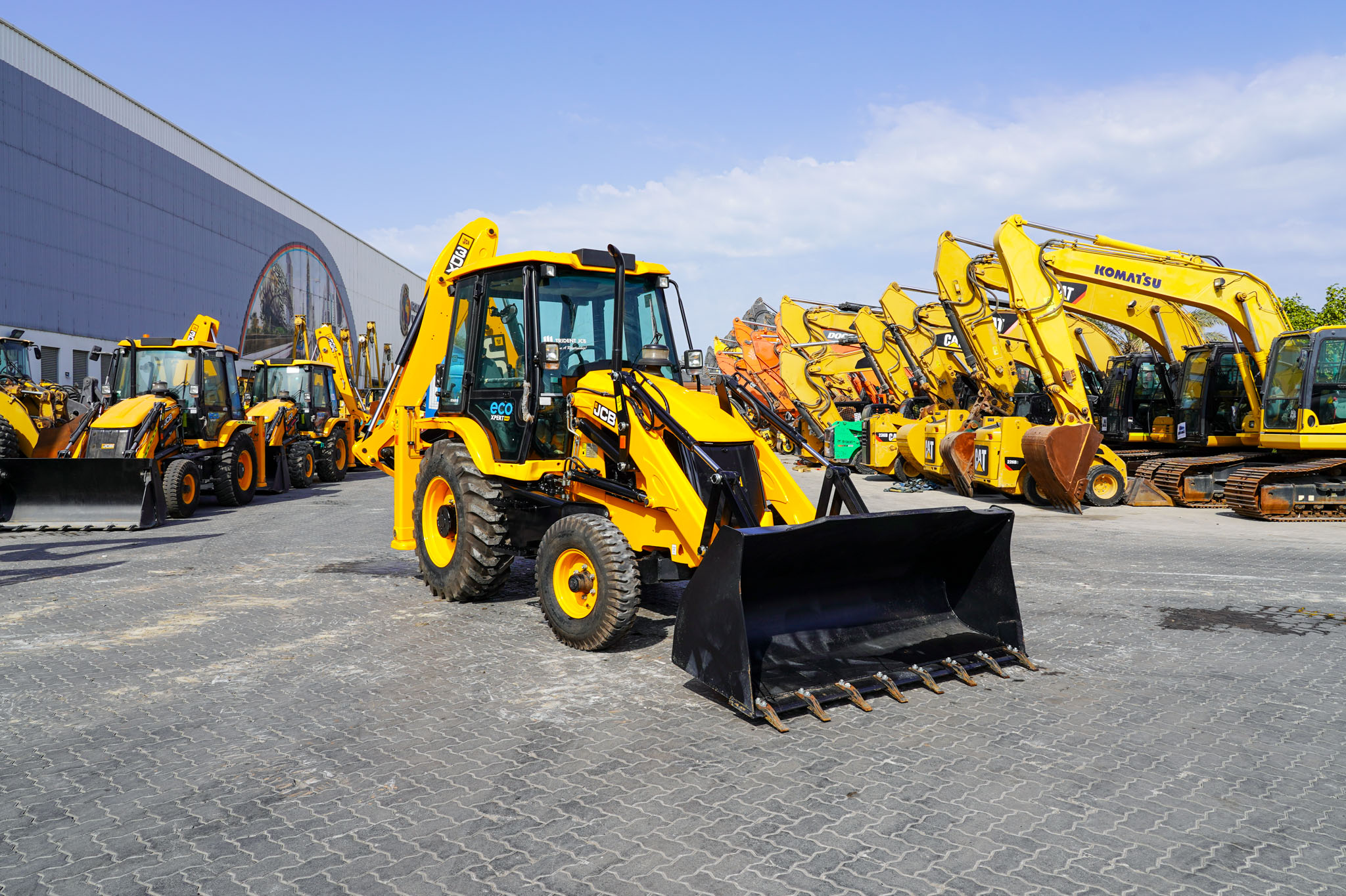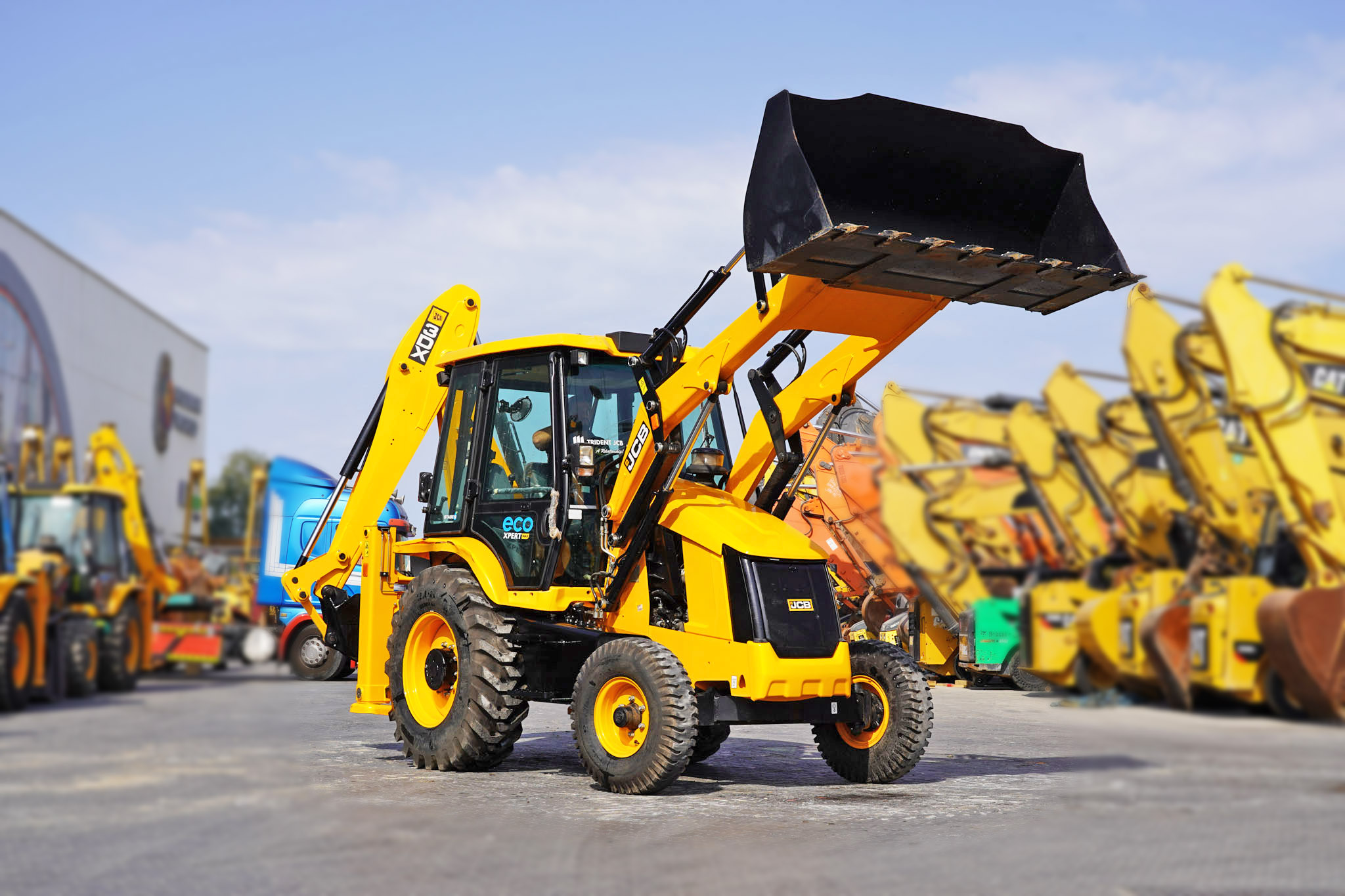 JCB Eco Xpert max, Stage 5, Turbo Charged Engine, 37 kW / 50 HP Engine Power, 4 Speed Manual Transmission, Enclosed Cab, 2WD, 1.1 Cu m GP Loader, 2.74 m Dump Height, 850 mm Backhoe Digging Bucket, 4.77 m Digging Depth, Side Shift, Air ride operator seat, and 10% Lower Fuel Consumption, EX#1649