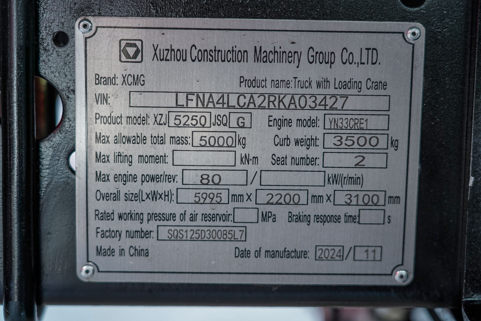 | Make | XCMG/FAC |